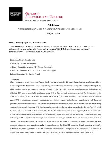 Obesity continues to be a prevalent issue for cats globally and one of the major risk factors for the development of this condition is overconsumption of dietary calories. The pet food industry continues to utilize metabolizable energy (ME) based predictive equations, which have been found to inaccurately estimate energy density of diets. To provide true estimates of dietary energy, the heat increment of feeding (HIF) must be quantified to calculate net energy (NE) in diets varying in macronutrient content. The first objective of this thesis was to quantify in vivo NE in diets titrating in crude protein (CP) or total dietary fibre (TDF) in exchange with nitrogen-free extract (NFE) by using indirect calorimetry where excreta was collected to measure fecal and urinary energy losses as well. The second goal of the thesis was to assess how HIF was affected by physiological and nutritional factors which can alter NE availability by using a meta-analysis approach. Increasing CP in diets increased apparent digestibility and urinary energy loss but did not affect HIF, which led to higher NE. These results contrast previous NE estimates observed in omnivorous animals, suggesting that cats retained similar efficiency of adenosine triphosphate (ATP) production with higher CP provision. In comparison, increasing TDF reduced digestibility and subsequent NE as expected, but interestingly fecal metabolites indicating gut health function were optimized at intermediate TDF treatment. The meta-analysis found that younger cats fed higher calories had greater HIF whereas high dietary CP and low NFE were associated with greater thermogenesis. Altogether these results suggest that feline HIF production depends on caloric provision by dietary nutrients, which aligned with in vivo NE observations where increasing CP improved caloric provision while TDF limited it. Overall, these results should inform formulating less energy dense diets suited for metabolic adaptations of the carnivore cat.