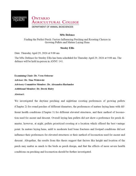 We investigated the daytime perching and nighttime roosting preferences of growing pullets (Chapter 2) for round perches of different diameters, the preferences of mature laying hens with different health conditions (Chapter 3) for different elevated structures, and their method of locomotion used for ascent and descent. Overall laying hen pullets did not show a preference for perch diameter, however, at night, pullets prioritized roosting at a location which offered the best vantage point. In mature laying hens, mild to moderate keel bone fractures and footpad conditions did not influence their preferences for elevated structures or their method of locomotion used for ascent and descent. Altogether, the results from this thesis suggest that factors like height and location of the perch may matter as much to the birds as perch design, and that the effects of more severe health conditions on perching and locomotion should be further investigated.